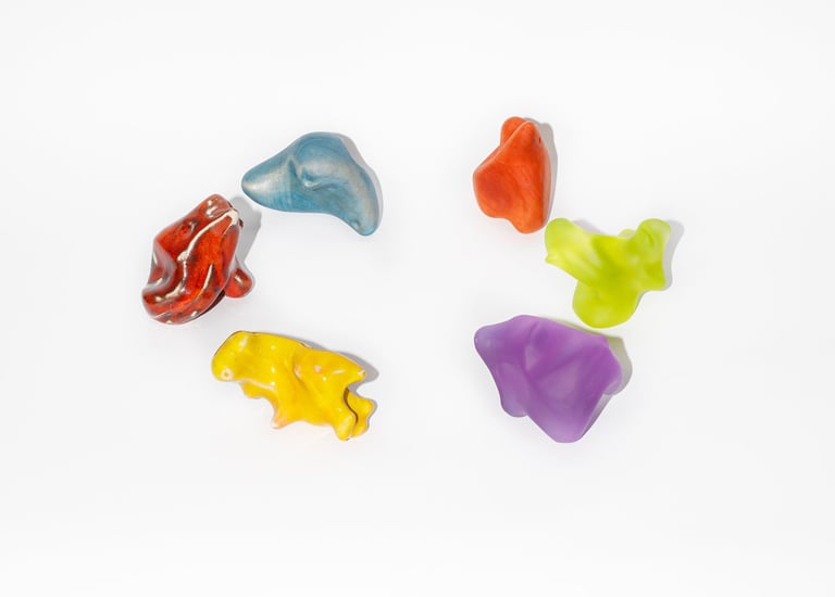The core of her work is color used not just for aesthetics, but as a way to express energy, emotion, and joy. Her objects are deeply personal yet speak to broader questions about tradition, craft, and the human experience.